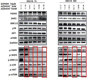 For ease of comparison, we circled 10 μm SHP099, 10nM AZD4547 and 10nM AZD4547+10 μm SHP099 in red.